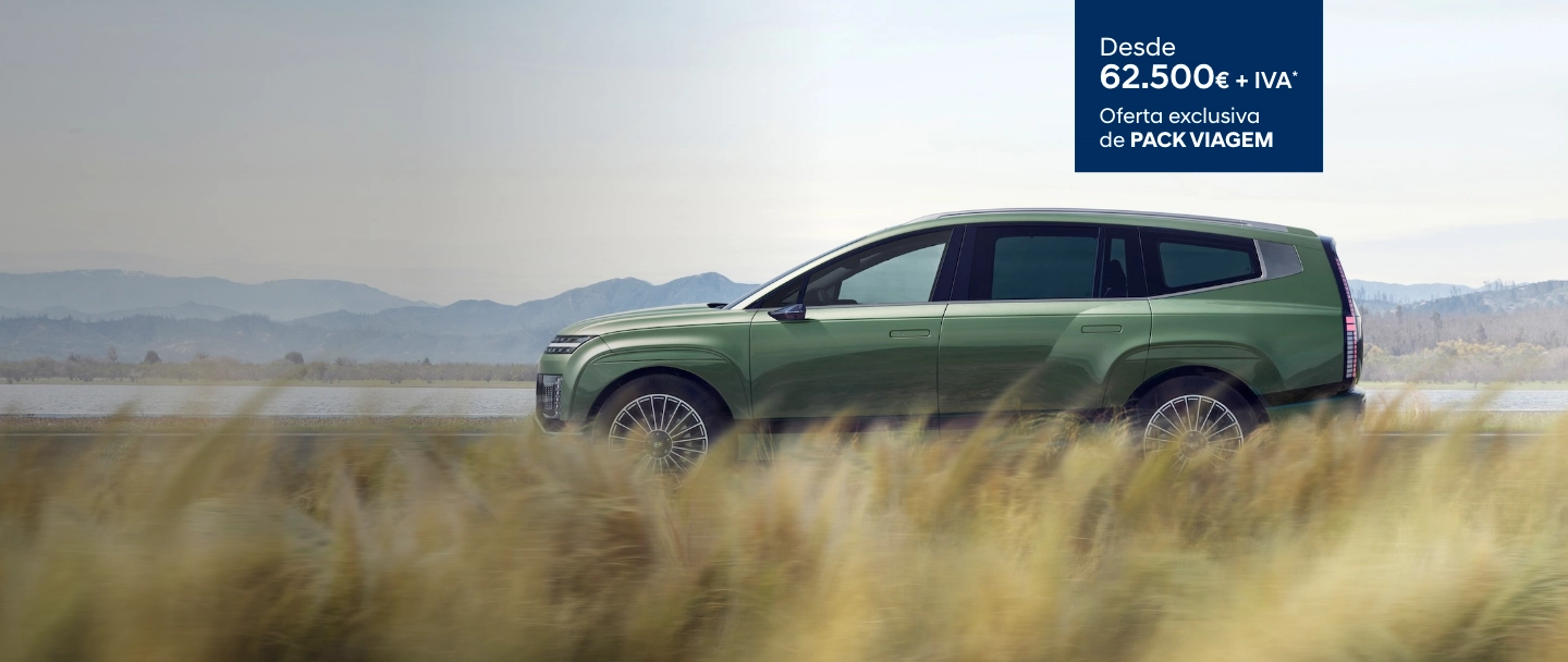 *Campanha para Empresas e ENI, válida até 12/03/2026, para o Hyundai IONIQ 9 EV 600km Calligraphy MY26, limitada ao stock existente e disponível, nos concessionários aderentes. Valor inclui despesas de legalização e transporte, e custos adicionais de opção de pintura. As imagens e equipamentos apresentados são meramente ilustrativos e podem não corresponder às versões em campanha ou comercializadas em Portugal. Consumo energético (kWh/100km): 20,6. Emissões de CO2 em ciclo combinado (g/km): 0.